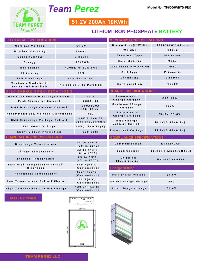 200Ah 51.2V LifePO4 Battery Power Wall with Active Balancer - Wall Mount Version